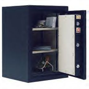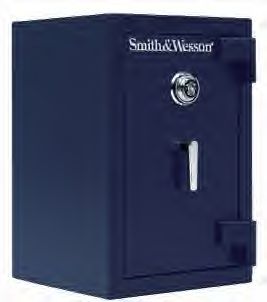 | theft with our Smith & Wesson Home Security Safes. This safe provides 30 minutes of fire protection in a 1200 degree fire. The durable deep blue textured finish with die cast polished chrome logo is suitable for any decor. The interior is a combination of rich velour and oak wood finish, and all shelves are adjustable. This gun safe features: